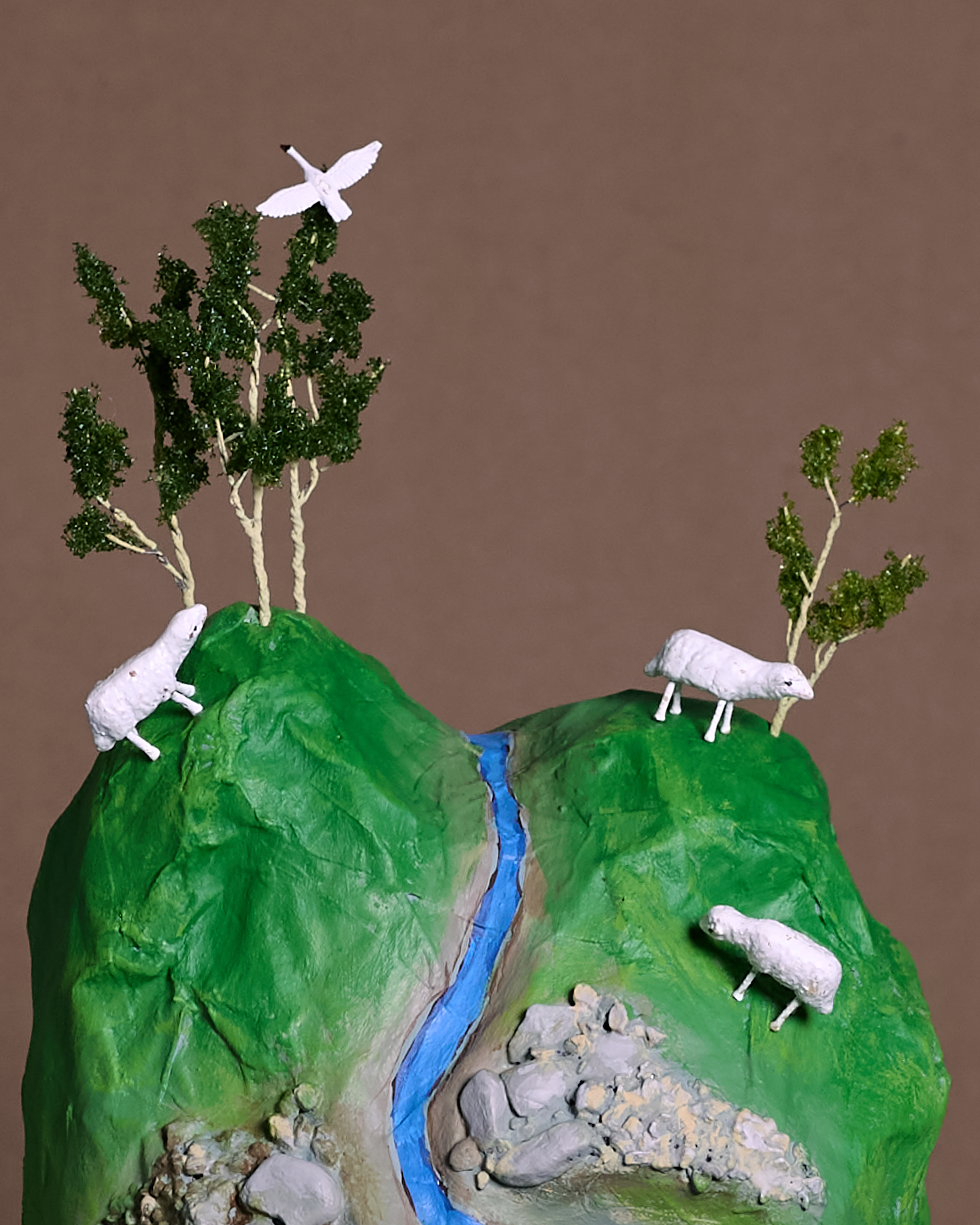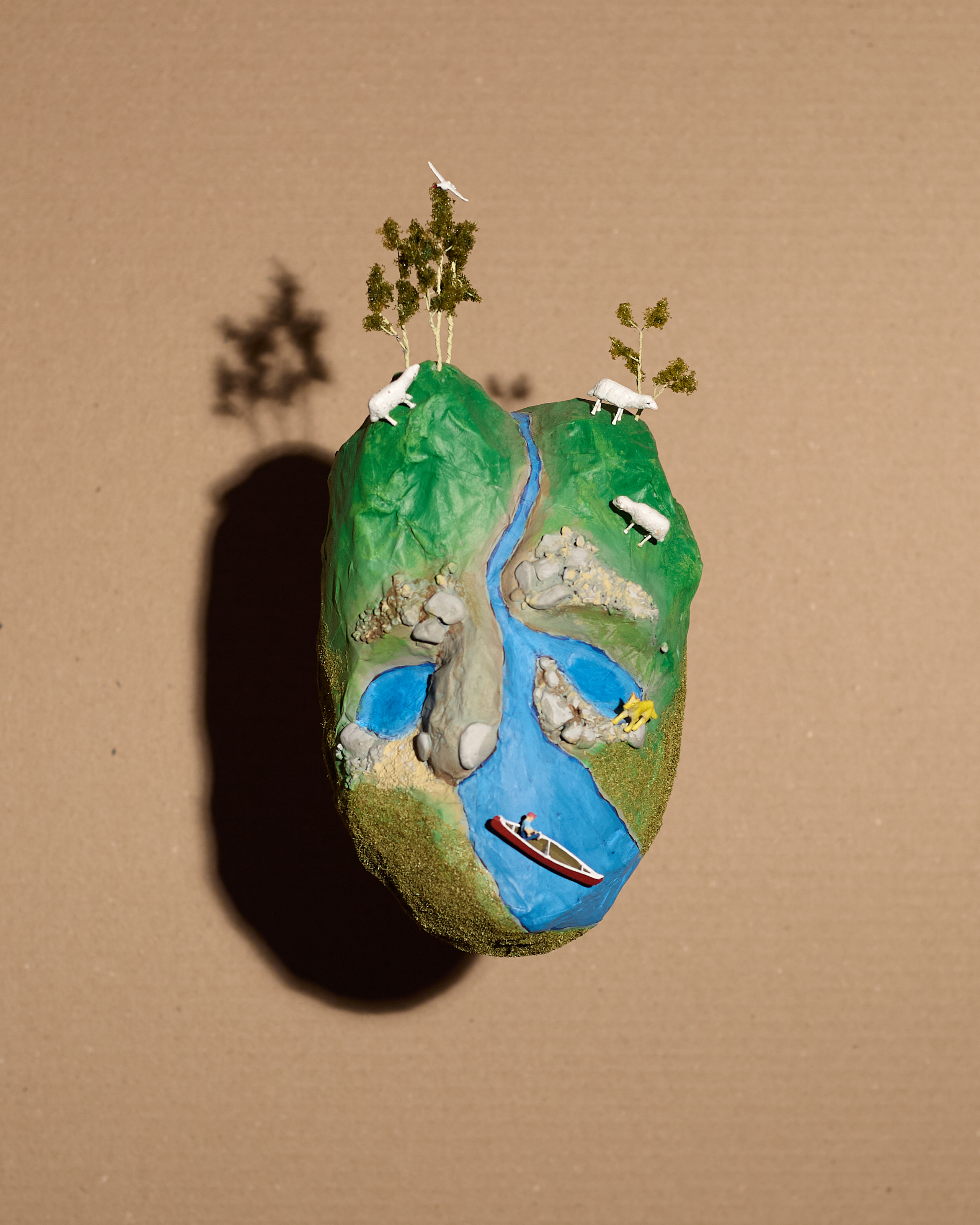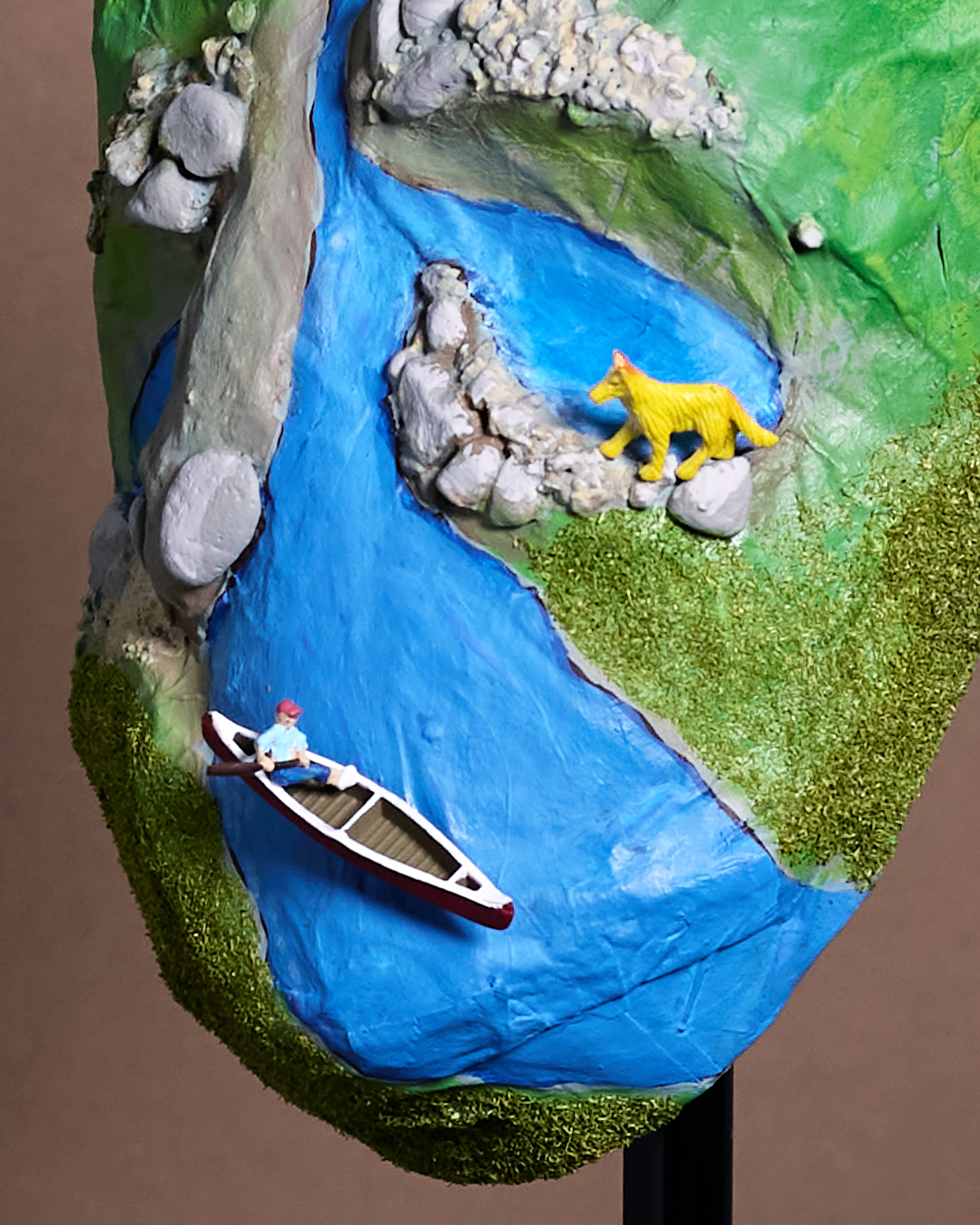 Color photograph and handmade papier-mâché mask