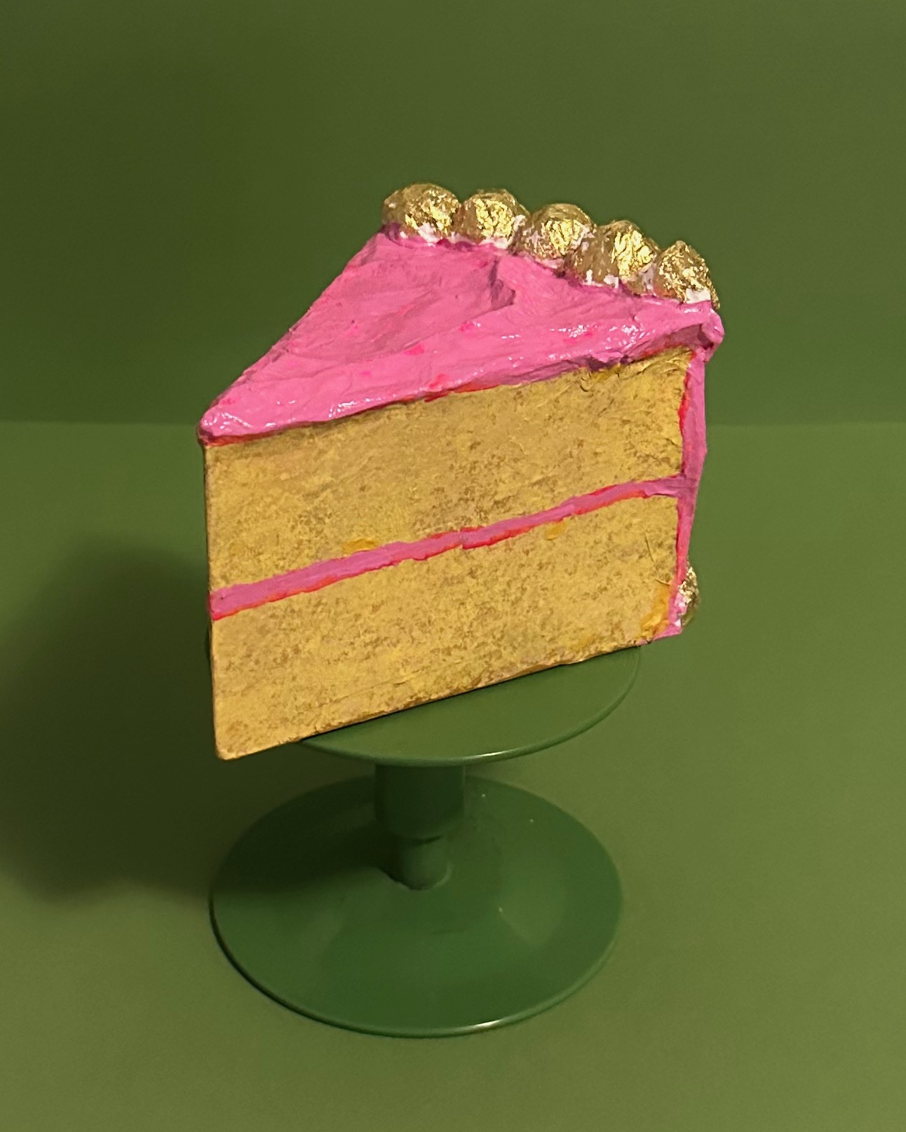 Cardboard, foil, tape, paper, Mod Podge, paint and imitation gold leaf
