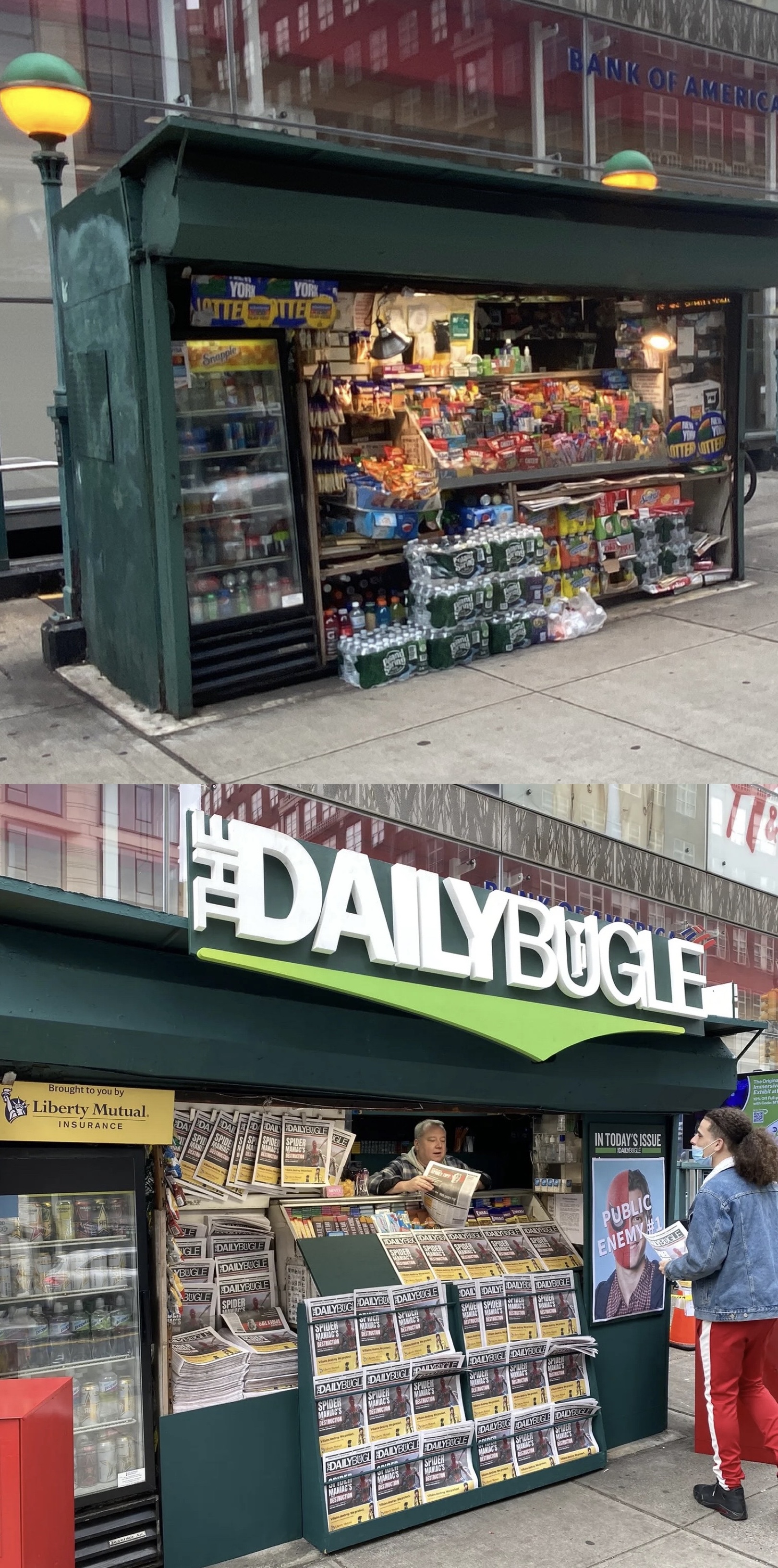 I transformed an old newstand in NYC at 86th Street and Lexington Avenue for a one day event sponsored by Liberty Mutual to promote the movie “Spider Man, No Way Home”
