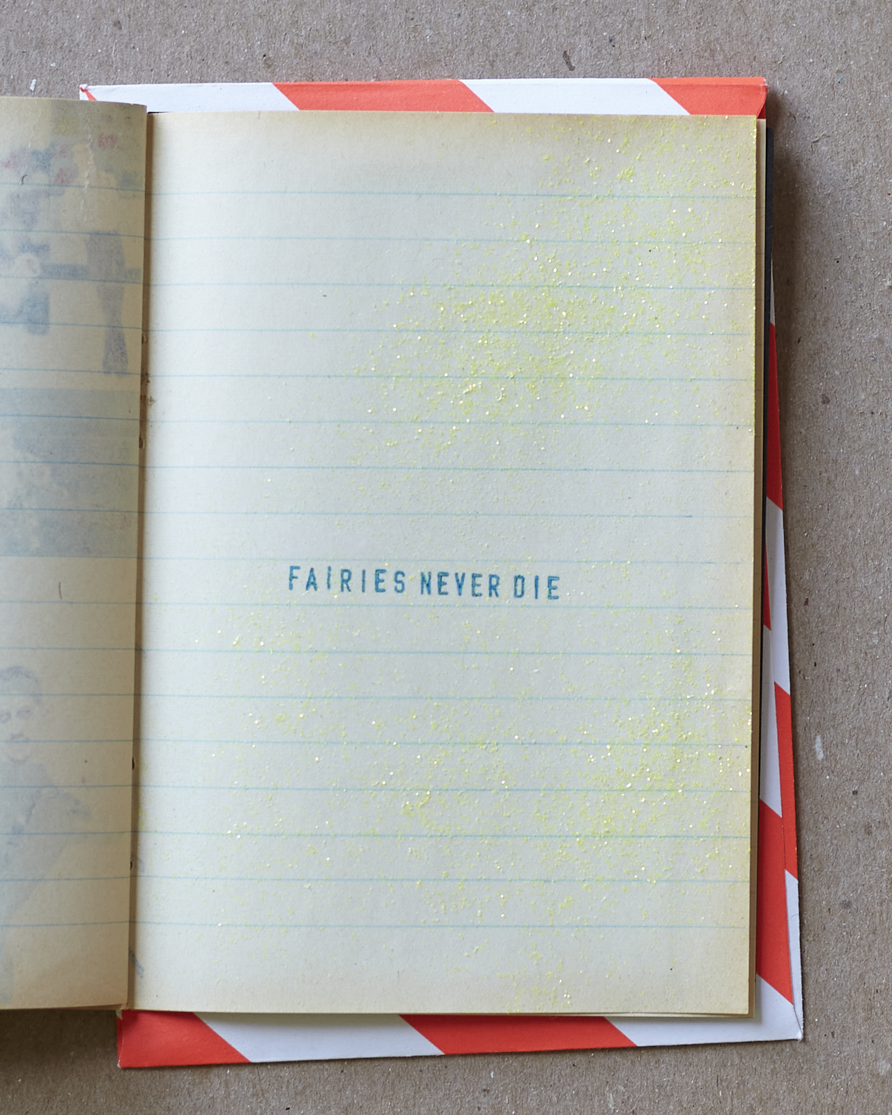 Each copy is unique with a combination of collage, found objects, risograph, letterpress, photocopy and glitter.