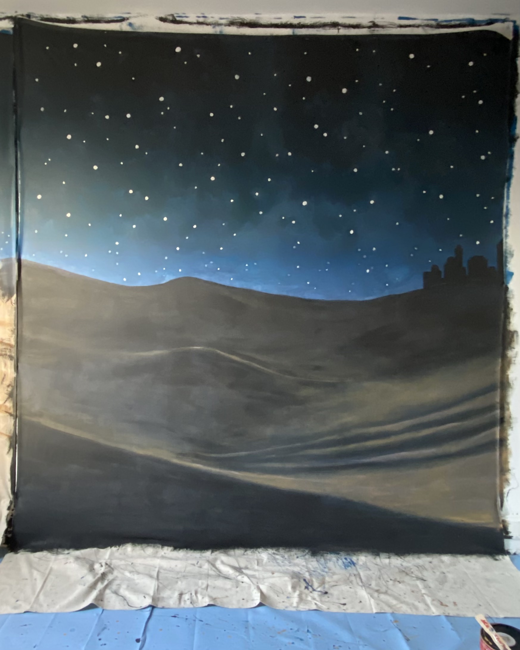 Northern star and painted desert mural for holiday service at St. Francis Xavier